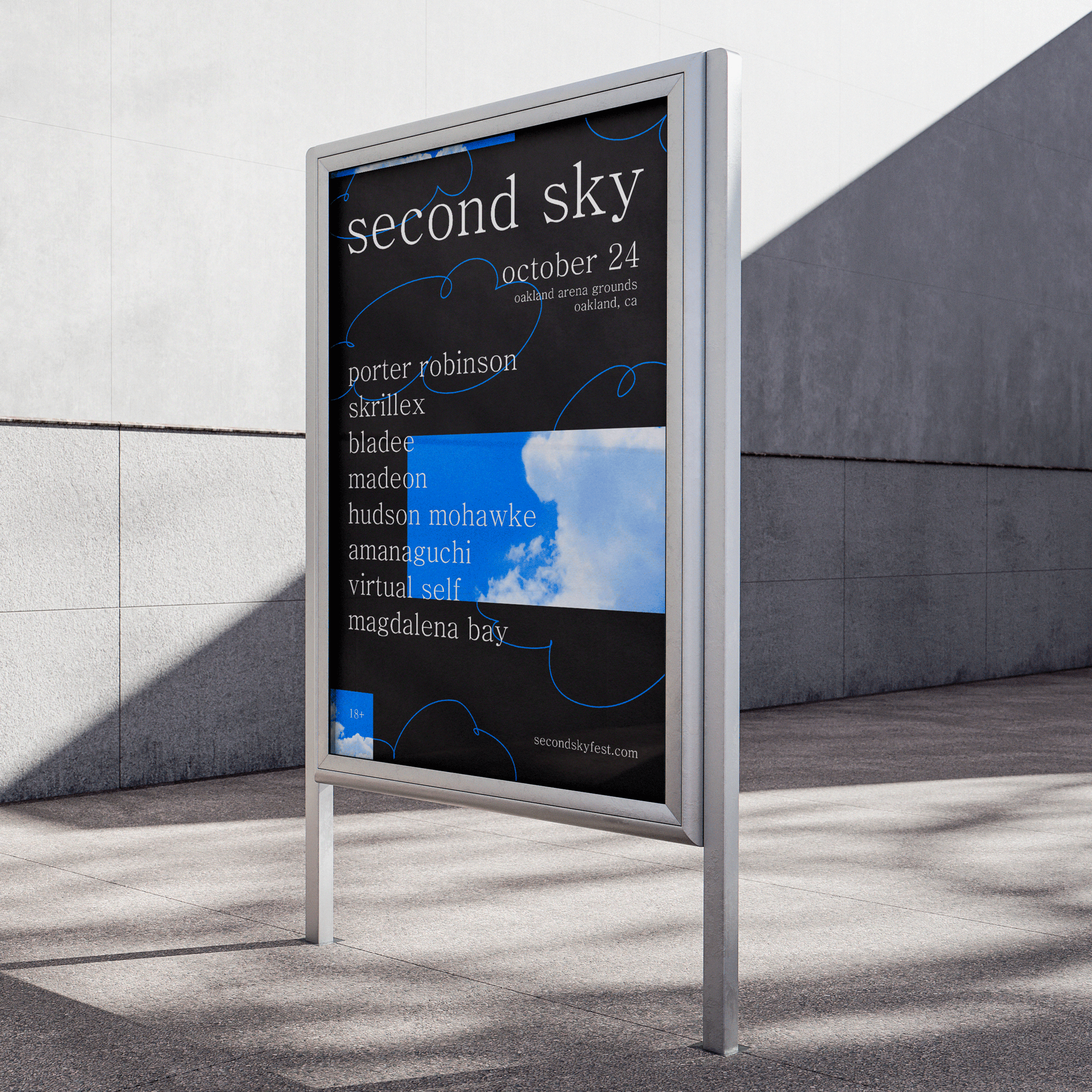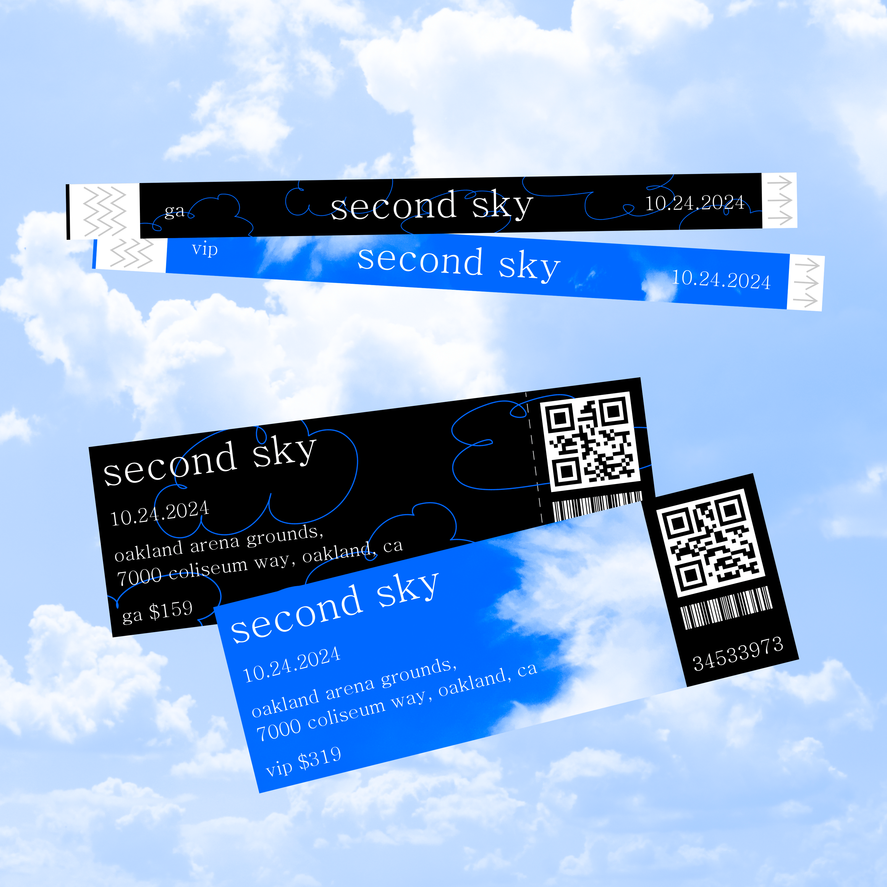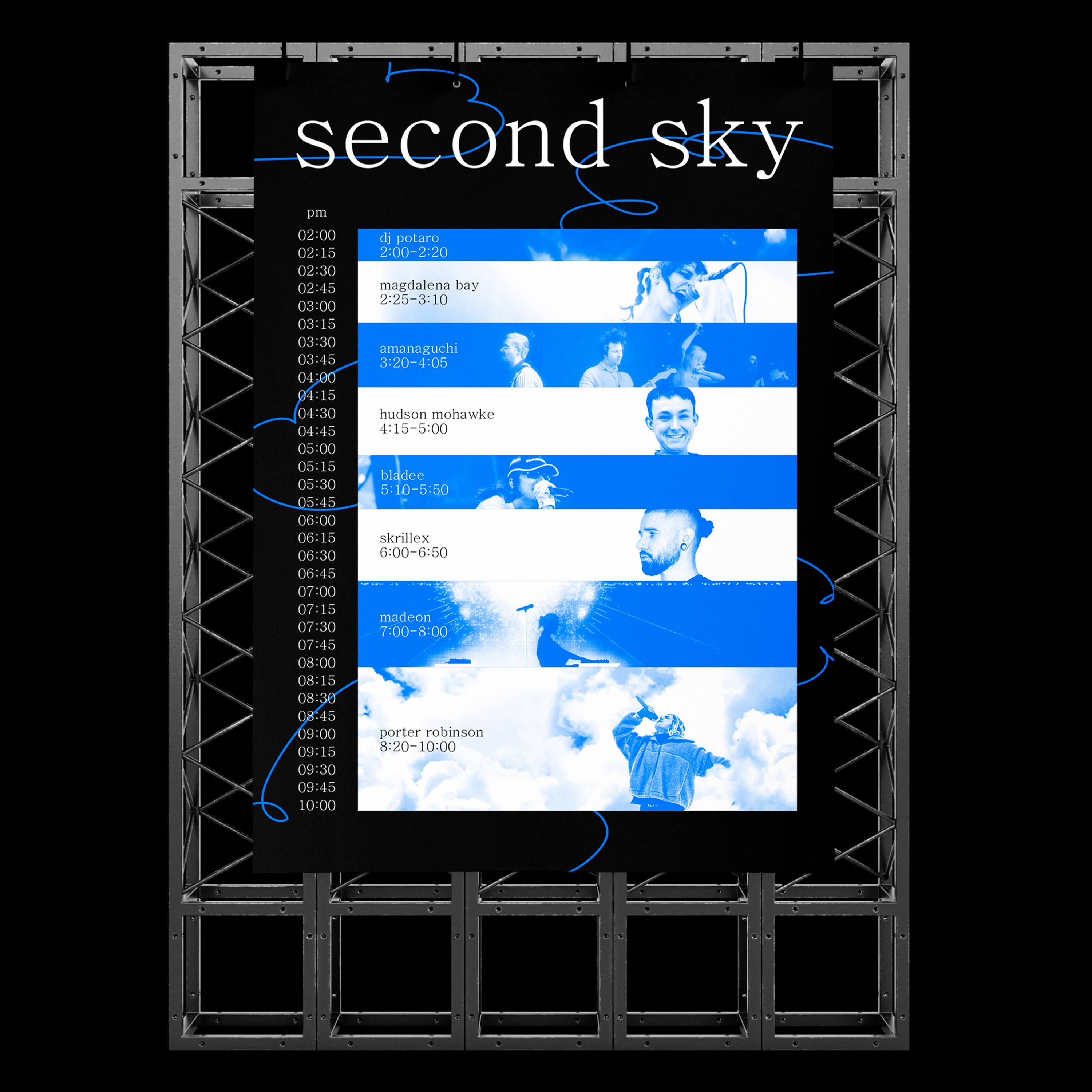 Cloud drawings are used as an expression of playfulness and lightness, symbolizing the freedom of music. These drawings intertwine with photographs of the sky, representing the power and perspective of nature. Through this connection, an aesthetic is created that reflects the musical experience of this festival.